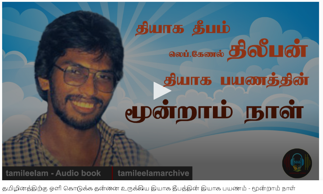 தியாக தீபம் லெப் கேணல் திலீபன் தியாக பயணம் - மூன்றாம் நாள்